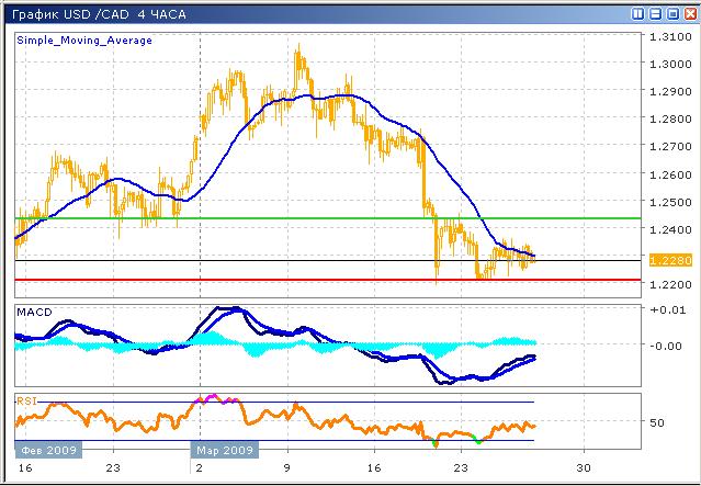 Укрепление канадского доллара завершилось очередным тестированием уровня поддержки 1.220. технические индексы указывают на продолжение нисходящего тренда, на это указывают и фундаментальные факторы. Вероятно, поддержка не будет преодолена с первого раза, поэтому пара может продолжить колебания внутри бокового коридора еще некоторое время. Технические индикаторы в текущих условиях подают достаточно надежные сигналы, которые обычно искажаются резкими бросками. Умеренное снижение в течение последней недели имеет все шансы продолжиться в среднесрочной перспективе, в результате можно ожидать тестирования отметок 1.210 к концу следующей недели.