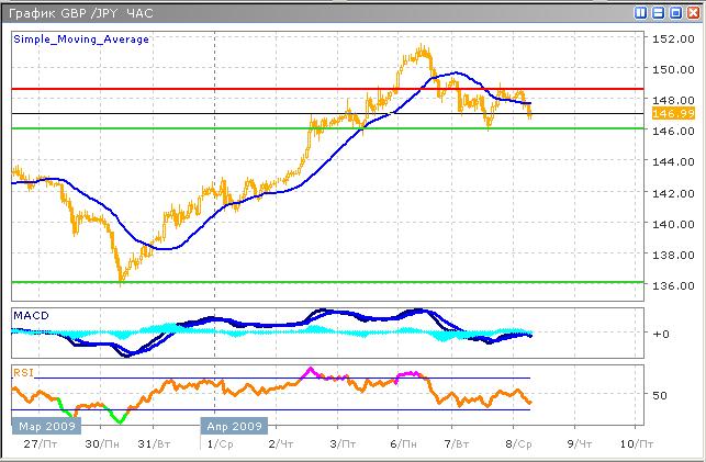 Рост пары замедляется, коррекция становится более глубокой. На часовом графике, который характеризует среднесрочную перспективу, видим сигналы падения моментума возрастающего тренда, при этом цель среднесрочного снижения расположена у отметки 146.00, нижняя граница актуального ценового канала. Волатильность на фондовых рынках, и трехдневная коррекция стала причиной снижения пары, поскольку иене снова вернется привлекательность со стороны инвесторов, желающих сохранить свои активы. Рост, который мы видели на протяжении последней недели, вероятно, окончательно завершится к концу текущей торговой недели, если обстановка на американских рынках не нормализуется. Технические индикаторы указывают на ослабление возрастающего тренда, при этом возникают первые сигналы на продажу, но в краткосрочной перспективе ожидается боковое движение. Гистограмма MACD на часовом графике длительное время колеблется у нулевой оси, иллюстрирую отсутствие идей на рынке. График индикатора RSI, постепенно снижается, приближаясь к верхней границе области перепроданности. На более мелком графике разворотных сигналов пока нет, поэтому настоящий момент не является идеальным моментом для входа.