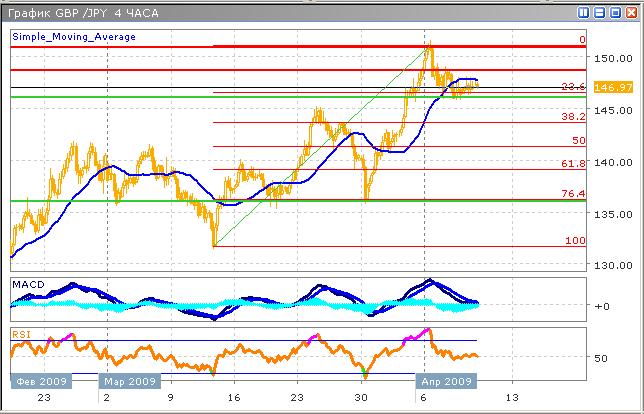 Рост пары замедляется, коррекция становится более глубокой. На 4-часовом графике, который характеризует среднесрочную перспективу, видим, все же, сигналы восстановления моментума возрастающего тренда, при этом цель среднесрочного снижения расположена у отметки 146.00, уровень коррекции Фибоначчи 23.6. Волатильность на фондовых рынках, и вероятная коррекция станет причиной снижения пары, поскольку йене снова вернется привлекательность со стороны инвесторов, желающих сохранить свои активы. Рост, который мы видели на протяжении последней недели, вероятно, завершится к концу текущей торговой недели. Технические индикаторы указывают на ослабление возрастающего тренда, однако, сигналов на продажу еще нет, при этом, в краткосрочной перспективе ожидается боковое движение. Гистограмма MACD на часовом графике длительное время колеблется у нулевой оси, иллюстрирую отсутствие идей на рынке. График индикатора RSI, также находится у средней линии, в среднесрочной перспективе возможен резкий бросок в восходящем направлении.