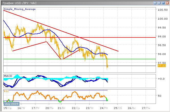 уровня поддержки 97.70, который долгое время сдерживал их натиск. Снижение на