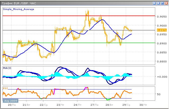 Технические индексы указывают на продолжение нисходящего тренда. Осциллятор MACD близок к подаче двойного сигнала на продажу, пересечение гистограммой нулевой оси, и соответствующее пересечение скользящих средних. График индикатора RSI не на долго превысил среднюю отметку, и устремился вниз. Такие сигналы не являются надежными, но достаточно красноречиво говорят, о том, что оптимизм медведей по-прежнему велик.
