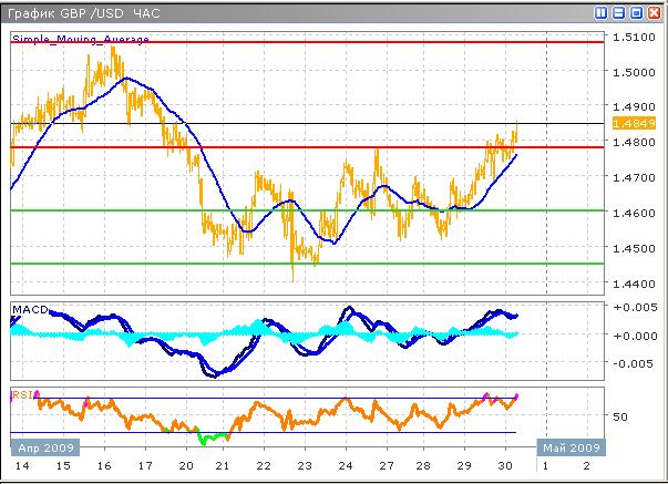 боковым движением цены вблизи отметки 1.48. Индикатор