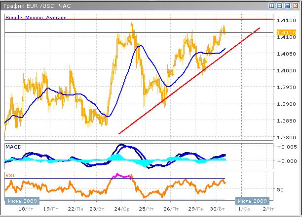 В среднесрочной перспективе ожидается рост пары, поскольку цена решительно приблизилась к границе области сопротивления, ниже которого протекали торги на протяжении длительного периода. Уровень 1.4120 достаточно ясно просматривается на часовом графике. На более мелком периоде отмечается отсутствие идей как роста, так и развития нисходящего тренда. Причиной этому стало восстановление фондовых рынков в США, которое, однако, было более эпизодическим, нежели тенденциозным, тем не менее, при положительных отчетах корпоративного сектора по результатам второго квартала этого года, рост вероятно продолжится. Технические индикаторы пока не дают отчетливых сигналов, для принятия торгового решения необходимо дождаться достижения ценой ключевых уровней.